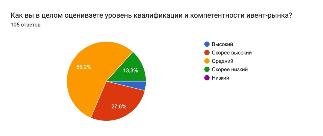 Итак, первый вопрос гласил: Как вы в целом оцениваете уровень квалификации и компетентности ивент-рынка? И тут уже сразу появились интересные цифры: